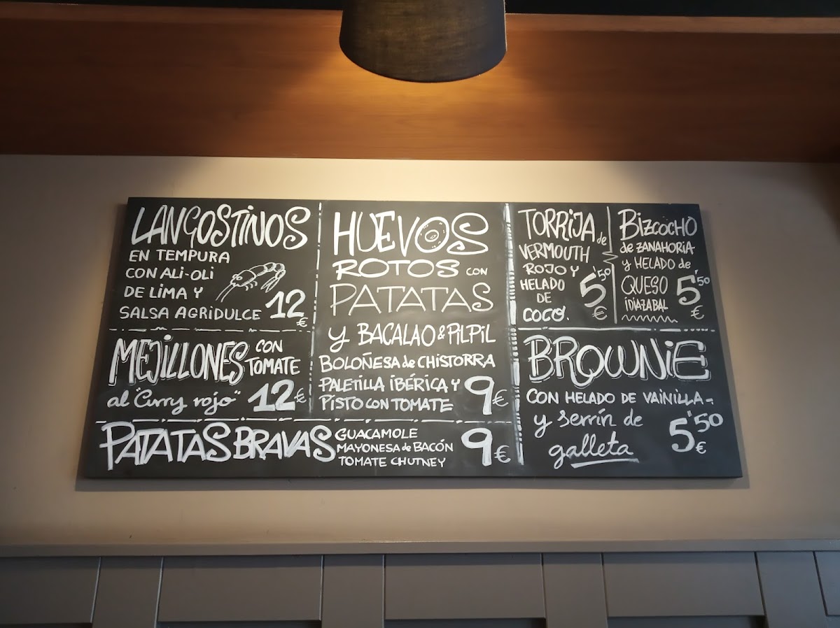 The menu features familiar favorites such as Bacalao al Pil Pil and Huevos Estrellados con Txistorra, alongside inventive touches like Black Risotto with Squid and Ali-Oli Sauce. Small bites like croquetas and tempura mushrooms complement a choice of local beers and classic drinks including Gin Tonic and Café con Leche, creating an experience that’s both comforting and satisfying.